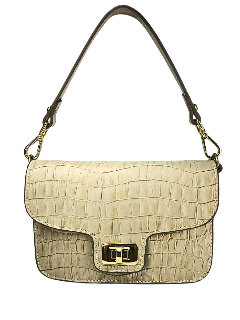 Bolsa Shoulder Bag Croco Catarina em couro croco sofisticado.